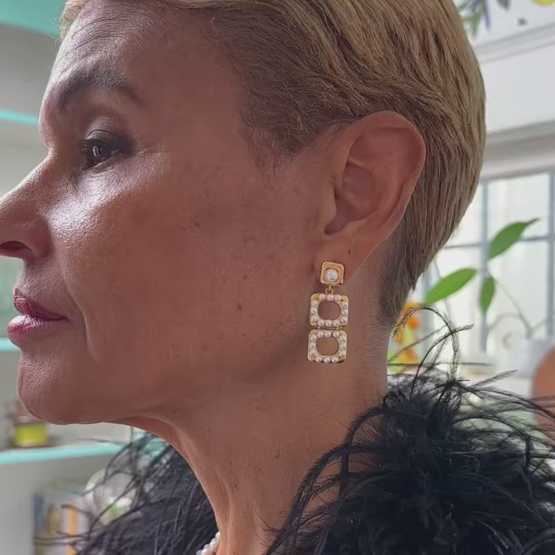 Why it's special: Switch up your look from day to night in a snap - simply pull on the back of the rectangular pearl hoop to reveal and drop down another hoop encircled by seed pearls or snap it back together depending on your mood.